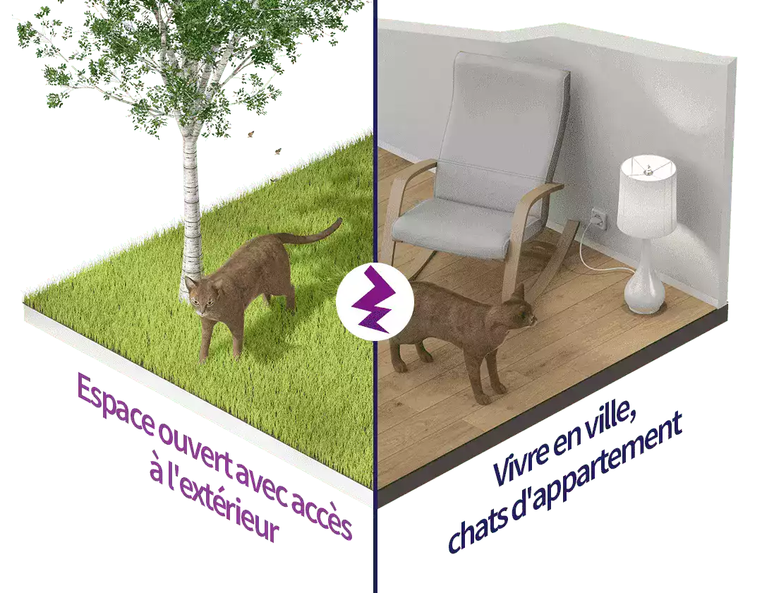 De nombreux chats vivent en appartement. On pense souvent que les chats ont besoin de moins d'espace et d'exercice que les chiens. C'est exactement le contraire ! En appartement, il est parfois difficile de répondre aux besoins naturels des chats. Ils disposent de peu d'espace et n'ont pas ou peu accès à l'extérieur.