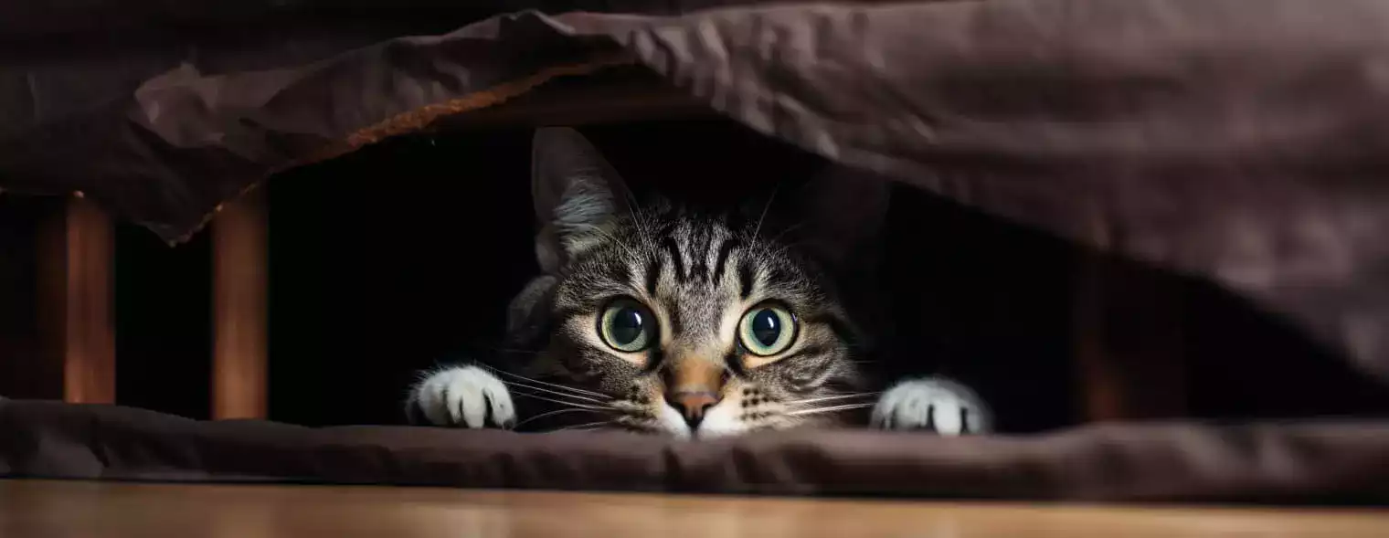 les feux d'artifice et les pétards effrayent nos boules de poils. Assure-toi que ton félin est en sécurité à l'intérieur pendant ces moments et qu'il puisse accéder sans autre à son refuge au calme.
