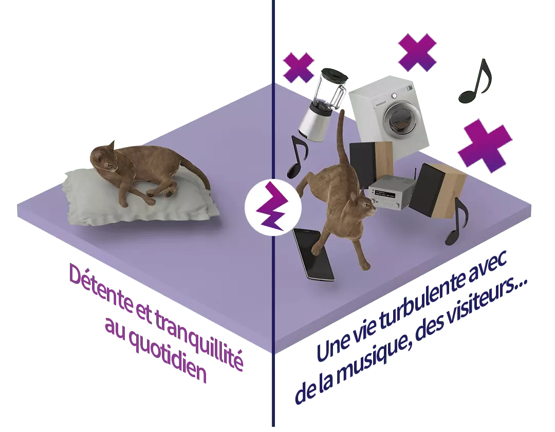 Les chats sont des animaux très calmes. Ils apprécient beaucoup la routine et ne veulent pas être surpris. En revanche, notre vie quotidienne moderne et rapide est faite de nombreux changements et de bruits forts.